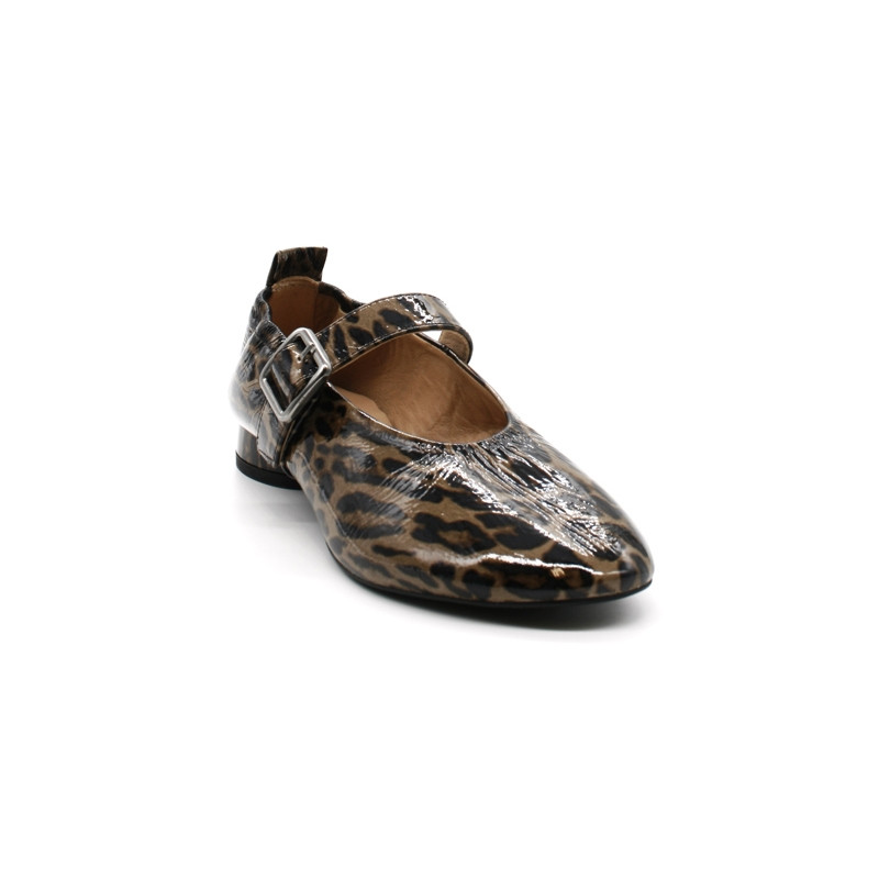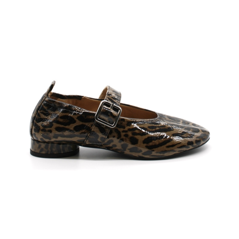 Tige en cuir verni avec imprimé léopard.