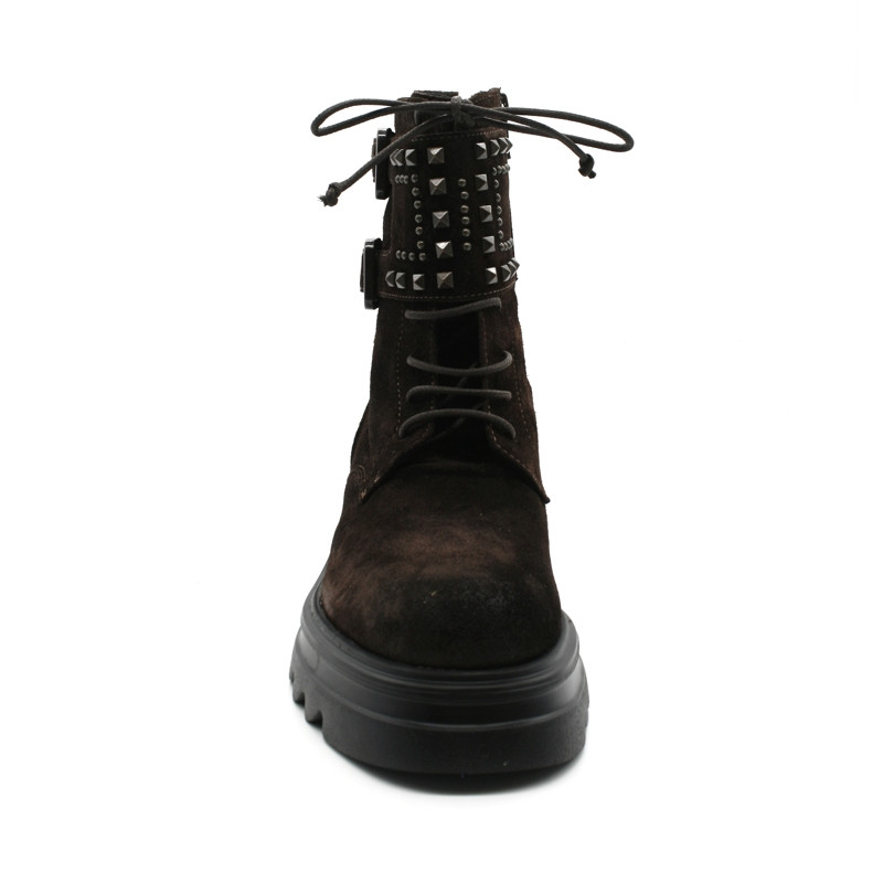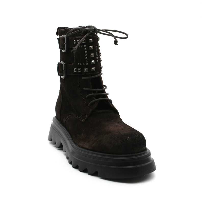 Large lanière ornée de clous décoratifs à la cheville.