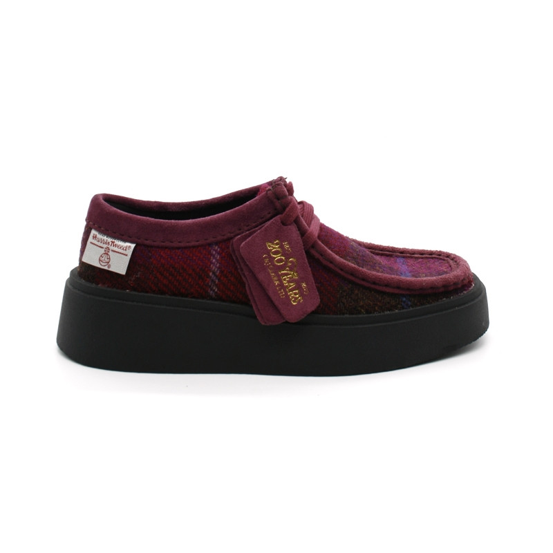 Étiquette "Harris Tweed" sur l'arrirère de la chaussure.